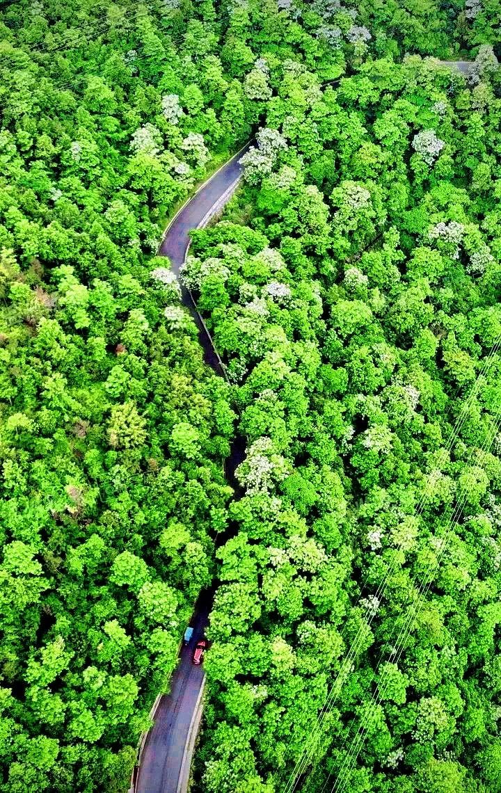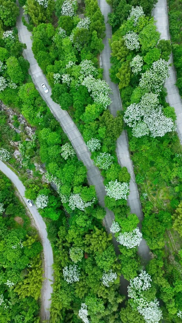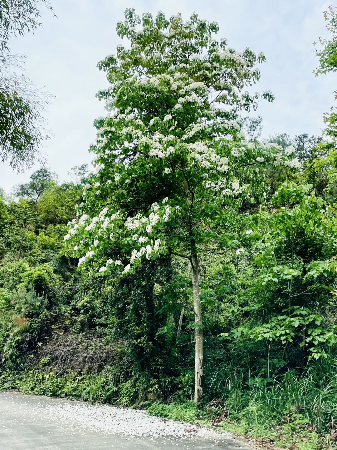 藻溪镇的盛陶村、加针坑村等地,油桐花也在枝头绽放。它们长在蜿蜒的山间公路旁,形成一条条梦幻的 “油桐隧道”,吸引了不少摄影爱好者前来捕捉这美丽的瞬间。