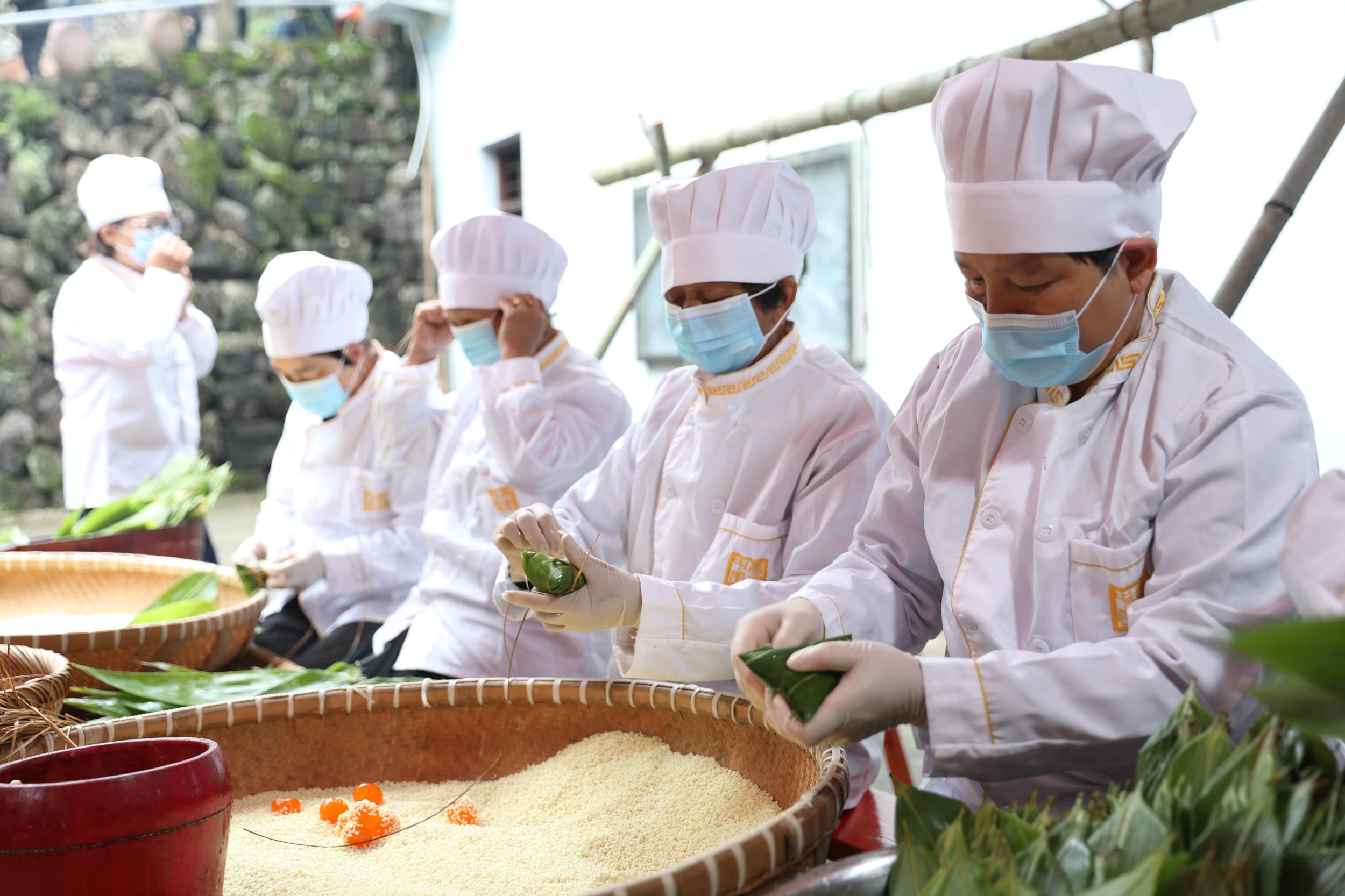 永嘉巽宅灰汤粽包制现场。蒋勇摄
