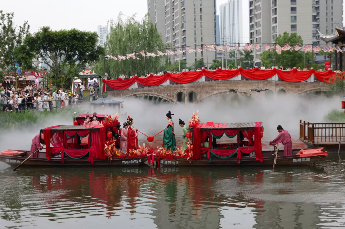 该活动不仅重现了宋式婚仪礼俗,更以塘河为纽带,将水乡婚俗与在地文旅深度融合。摄影: 郑鹏