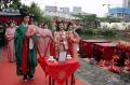 活动以复原 塘河宋式水上婚俗为核心,通过水上迎亲、骑马巡游、十里红妆、汉婚大典等环节,再现演绎了宋韵婚仪之美。摄影: 郑鹏