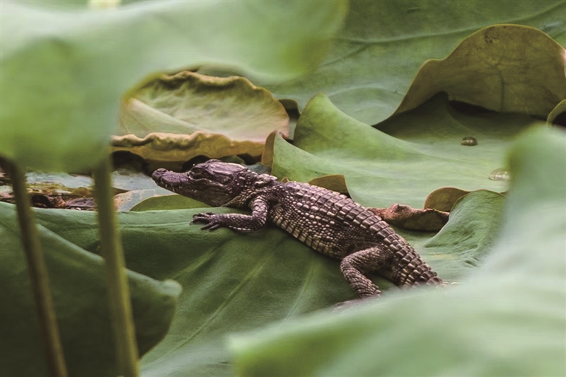 昨天下午,鳄鱼现身九山湖荷叶区 曾于恺/摄