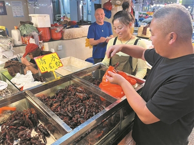 大南门农贸市场里市民选购小龙虾 现代菜篮子供图