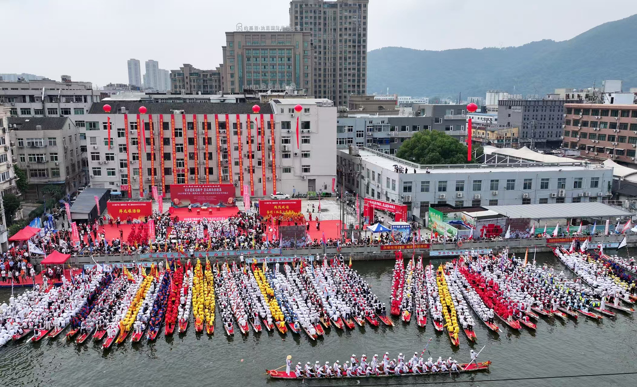 5月25日,瑞安塘下镇(塘西社区)龙舟文化节吸引不少龙舟在南山渚河开展民俗活动。拍友 徐洪娒 摄