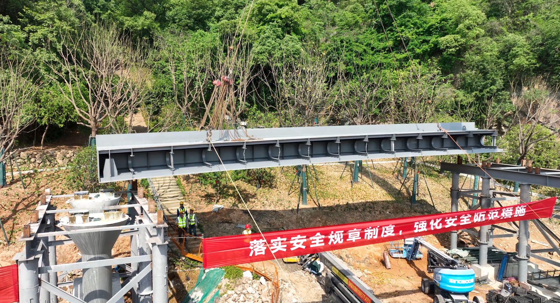 5月13日上午,园博园跨线桥项目迎来关键性节点—首跨钢箱梁成功吊装完成,标志着项目即将进入上部结构施工阶段,为后续桥梁贯通奠定了基础。杭州萧宏建设环境集团有限公司园博园跨线桥项目部副总工林强介绍,跨线桥桥跨布置为14跨六联钢结构箱梁,已顺利完成吊装的是连接9-11号墩的第五联。