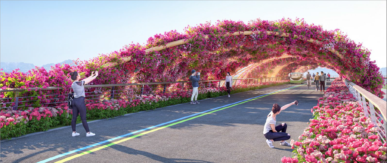 园博园瓯海大道跨线桥总长467.62米,桥宽10米,是连接园博园南园和北园的一座人行景观桥梁。作为温州园博园最早开工的标段,也是BIM技术场景应用最深入的标段。