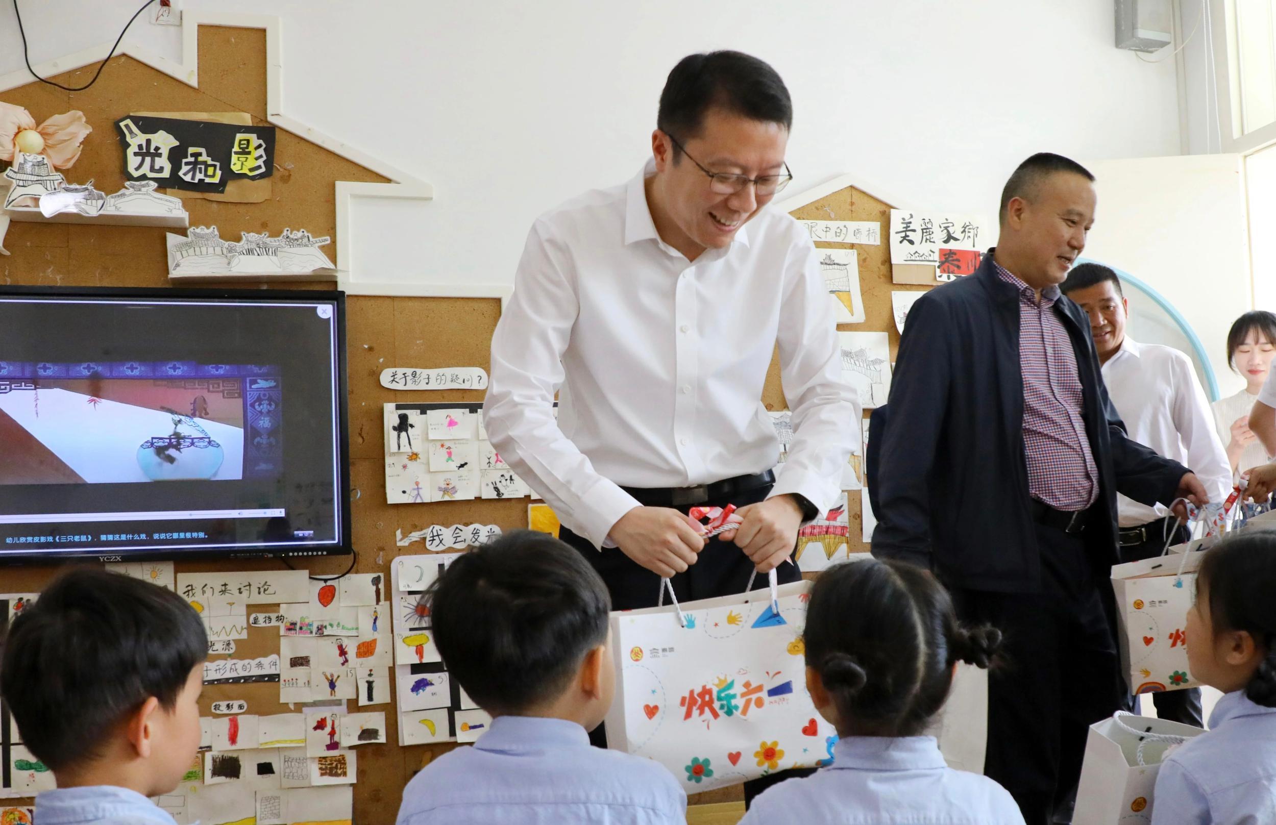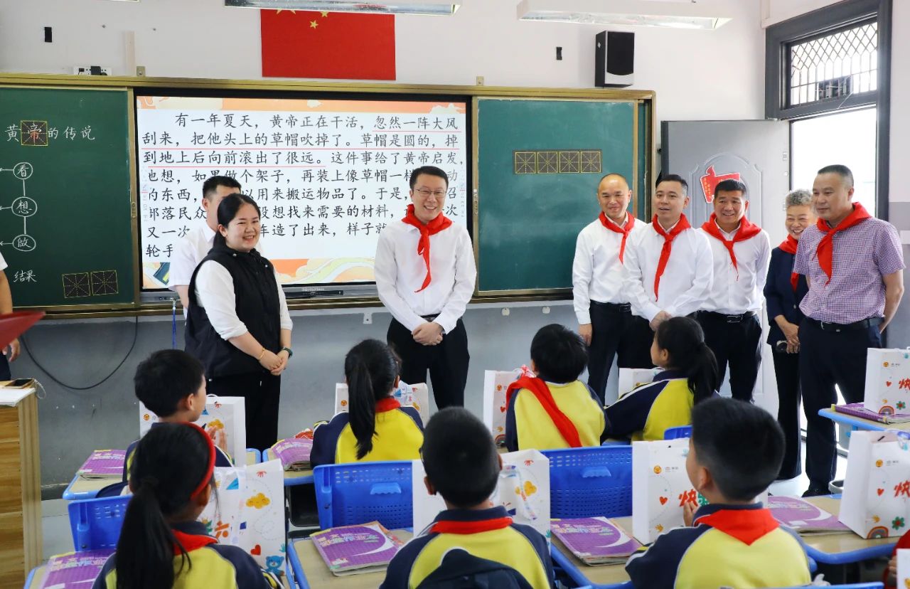 在罗阳镇中心小学,朝气蓬勃的少先队员为丁熠锋一行系上鲜艳的红领巾。在详细了解学校办学特色、学生个性发展、师资队伍建设等情况后,丁熠锋走进教室为孩子们送上了儿童节礼物。他祝孩子们节日快乐,感谢教师的辛勤付出,希望广大教育工作者担起教书育人、立德树人责任,遵循少年儿童身心发展规律,用心用情关爱每一名少年儿童的身心健康,在寓学于乐、寓教于乐的环境中进一步培养孩子们的想象力和创造力,让孩子们更加阳光、更加自信。