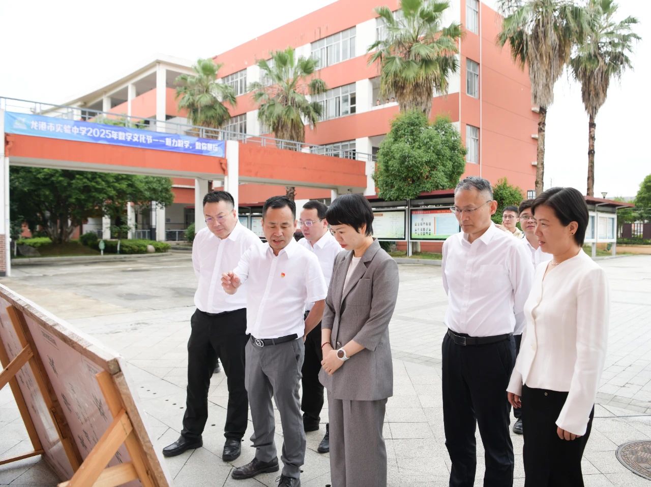 何宗静来到龙港中学、龙港市实验中学等学校,走进考务室、监控室,详细了解中高考考务组织管理、考点设施设备运行、安全措施落实等情况。在龙港中学,何宗静还与高三年级教师亲切交谈,对他们的辛勤付出表示感谢,勉励大家持续保持昂扬斗志和严谨教学态度,持续优化备考策略,科学分析研判考情学情,助力考生发挥真实水平、实现梦想。同时要密切关注学生身心健康,做好考生心理疏导,确保考生以乐观心态和积极状态迎接高考。