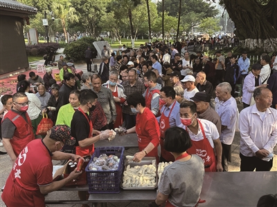 “粽”情端阳·爱心粽文明接力区内,粽叶翻飞、糯米飘香。中国好人、省道德模范周跃南,温州好人黄松光,省文明家庭郑英才一家,最美浙礼实践人黄小燕,市新时代好少年葛优畅和志愿者围坐,包粽子、话家常,场面温馨热烈。一位志愿者介绍:“我们今天准备了1000来个粽子,有肉粽、蚕豆粽、金丝蜜枣粽、蛋黄粽等多种口味,希望通过这个活动,把节日的温暖传递出去。”不少市民现场参与包粽子、品粽香,陈女士也带着2岁的孩子前来体验,“这样的节日氛围很难得,孩子也能从中学到传统文化的味道。”