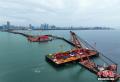 5月31日,福建厦门,厦金大桥(厦门段)刘五店航道桥西主塔首节段顺利落位,标志着西主塔开启“长个”模式,正式进入塔柱施工阶段。厦金大桥(厦门段)项目主线长约17.34公里。刘五店航道桥是该项目控制性工程,全长1948米,两座主塔高178.1米,主跨928米,是福建省内最大跨径桥梁,也是福建省首座全离岸式海中悬索桥。(无人机照片)