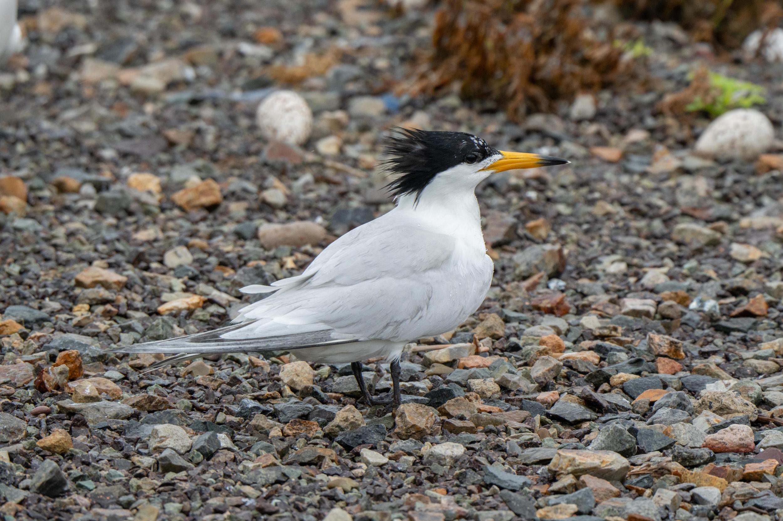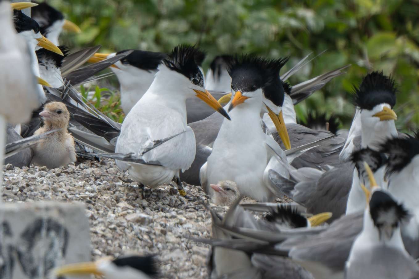 作为国家一级重点保护野生动物,中华凤头燕鸥已被《世界自然保护联盟濒危物种红色名录》列为极危物种,因为数量稀少、行踪神秘,一度被称为“神话之鸟”。每年4-8月,是中华凤头燕鸥的繁殖期,一对中华凤头燕鸥一年只产一枚卵,由雌雄轮流孵化。
