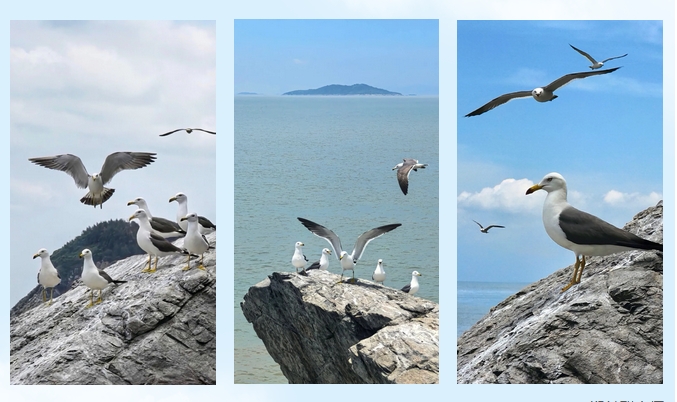 鹿西鸟岛,亦称南北爿山岛,坐落于鹿西岛东北方位,凭借其独特的生态魅力,去年入选“浙江省观鸟胜地”。该岛及其周边海域自然环境得天独厚,海洋生物种类繁多,为众多鸟类提供了理想的栖息与繁衍场所。目前,岛上栖息着包括国家级重点保护动物黄嘴白鹭、普通鵟、红隼以及游隼在内的多种珍稀鸟类……每年5月至9月期间,成千上万只海鸟汇聚于此,岛上处处可见“万鸥齐飞、万鸟齐鸣”的震撼景象。