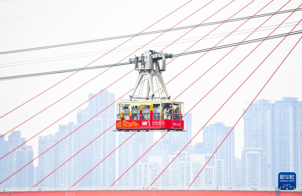 6月7日,游客乘坐缆车观赏重庆城市景色。