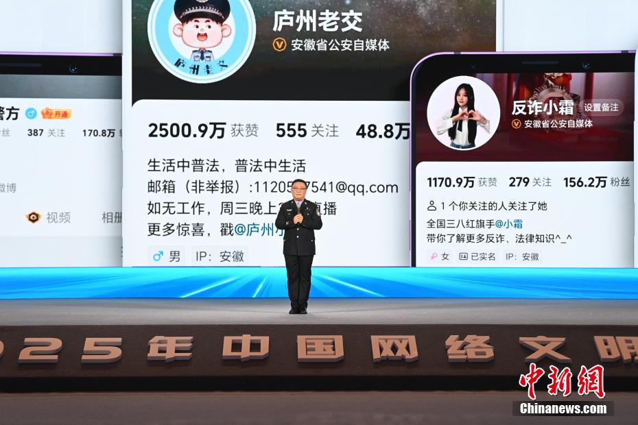 6月10日,2025年中国网络文明大会在安徽省合肥市开幕,这是中国网络文明大会首次在长三角地区举办。本次大会以“汇聚网络正能量引领时代新风尚”为主题,举办开幕式及主论坛、14场分论坛。图为安徽省公安厅法医、作家秦明发言。