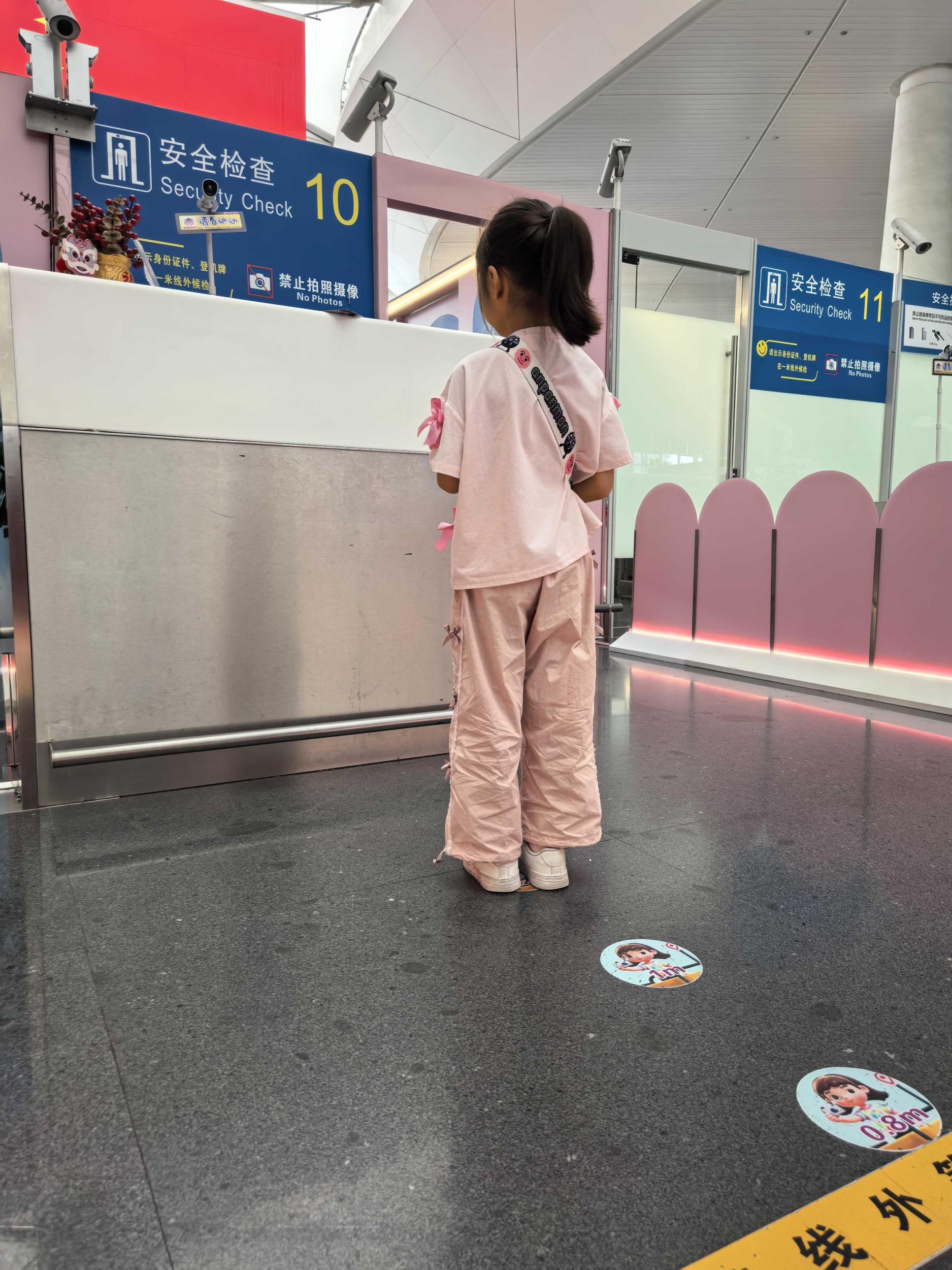 “以前单独带孩子过安检,又要抱他拍照,又要顾行李,手忙脚乱。现在好了,他只要站在那个小圆点上,自己就能完成,真的轻松太多了!”新的站位标识贴上后,不少带孩子乘机安检的旅客们连连点赞。