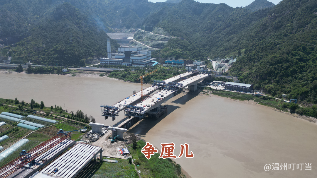 ●445米长的楠溪江大桥,桥面主体已初具规模,正进行连续梁施工,预计今年8月合龙。