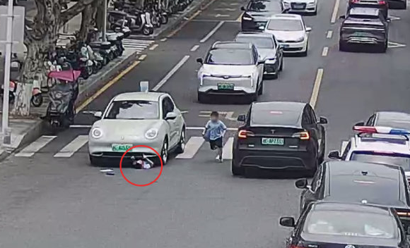 6月9日11时40许,乐清市丹霞桥桥头正值午间车流高峰期,突然,一名快速通过路口的小孩不慎与一辆正在向前行驶的轿车相撞,瞬间被卷入车辆左前轮下方,身体完全被车身压住,动弹不得,情况危急。