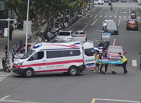 此时,乐清市公安局乐成派出所民警周索、辅警王海民因执行任务途经此路口,正在等待通行。看到情况发生后,两个人第一时间从警车中冲出奔向孩子,奋力将车头抬起,以减轻车辆对孩子的压力。