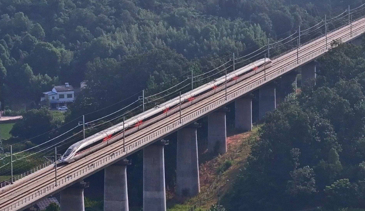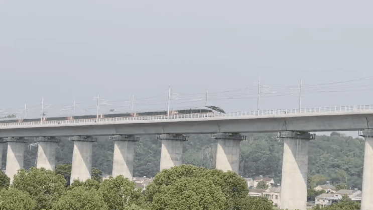 6月12日上午8时08分,全球最快高铁CR450AF通过沪渝蓉高铁武汉至宜昌段龙泉河特大桥。