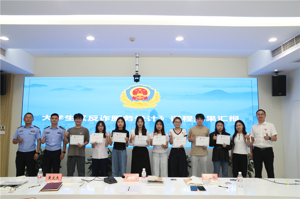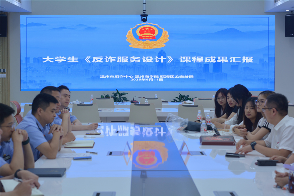 温州网讯(通讯员 瞿安琪 柯祺臻)6月11日下午,温州商学院传媒与设计艺术学院《反诈服务设计》课程成果汇报会在温州市反诈中心圆满举办。7组优秀学生团队带着精心创作的反诈作品,在现场依次进行介绍。这不仅是大学生反诈创意的集中展现,更是校警携手筑牢反诈防线的一次生动实践。