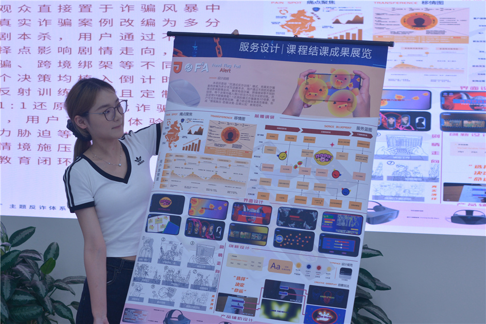 7支团队通过生动的视频演绎、直观的模型展示,汇报了“反诈互动游戏包”“沉浸式反诈教育空间”等作品,带来了一场创意十足的“反诈设计盛宴”。