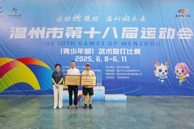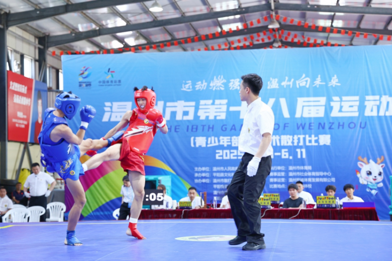 温州网讯 6月11日,温州市第十八届运动会(青少年部)武术散打比赛在平阳育英体校落幕。本次赛事由温州市人民政府主办、温州市体育局执行、平阳县文化和广电旅游体育局承办。