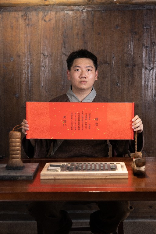 2022年,潘昱丞大学毕业回到瑞安,选择扎根乡土,开始系统学习木活字技艺。近三年来,他向浙江省木活字印刷代表性传承人吴魁兆学习木活字印刷传统工艺。他坚信,木活字印刷在保持古朴底蕴的同时,也能与时俱进,展现其新鲜有趣的一面。