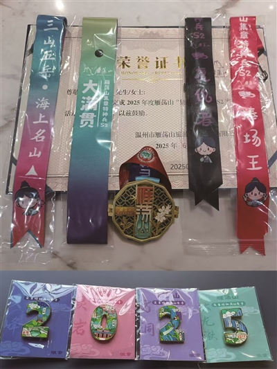 挑战成功的奖励也随之加码,高颜值的景区徽章、独家首创的大满贯织带等新奇设计,将景区地标夫妻峰、区域特产铁皮石斛花、传统非遗细纹刻纸等元素融合起来,在历史与现代交融中碰撞出新火花。
