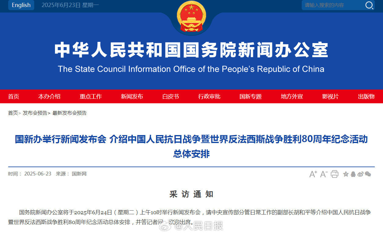 国务院新闻办公室举行发布会介绍中国人民抗日战争暨世界反法西斯战争胜利80周年纪念活动总体安排