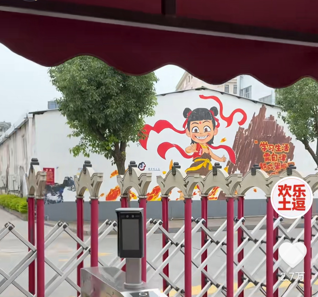 原标题:网红画师10小时高温创作“哪吒”墙绘成乡村校园励志风景线