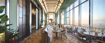 穿过层高约达24米的豪华大堂,乘坐电梯便可直达位于38层的空中会客厅。这个位于鹿城广场丽锦159米巅峰之处的会客厅,绿城豪气地拿出一整层作为业主的配套设施。会客厅由享誉国际的设计公司AB Concept精心雕琢而成,融合了全日制餐厅、宴会包厢、空中酒吧、雪茄吧、太太空间等为一体。约8米的挑高空间,独特的山茶花瓯绣和八角亭元素的运用,浮凸手工瓯塑、刻纹玻璃以及手工敲击纹木板等材料的融入……整个空中会客厅不仅可以一览瓯江江景,还是一个承载深厚文化与高雅品位的标志性场所。