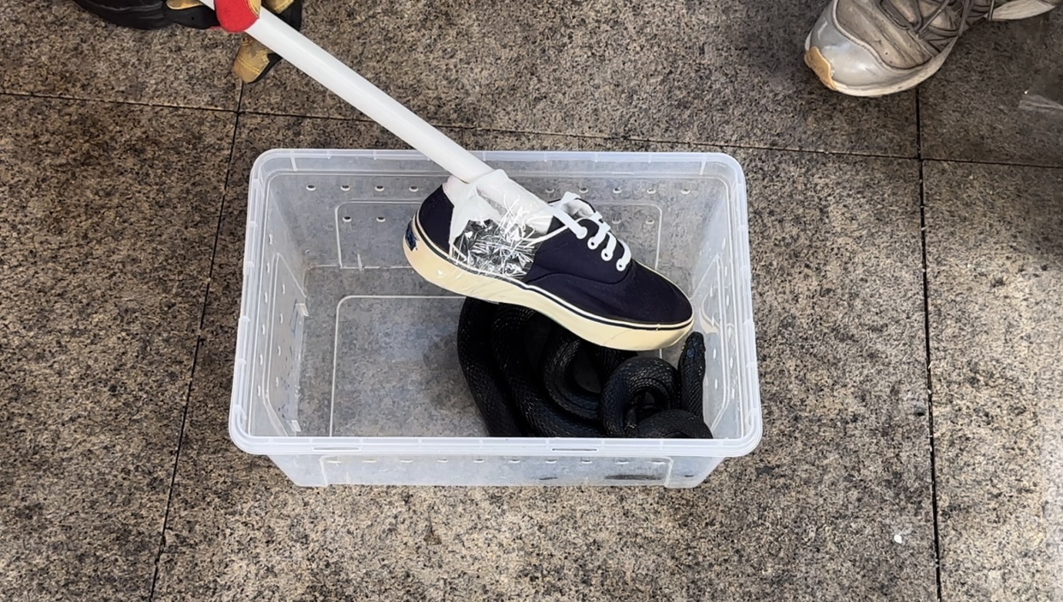 蛇对喷洒了驱蛇喷雾的鞋子毫无反应。李睿清/摄