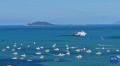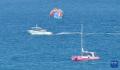 6月24日,众多游艇在海南三亚湾海面上驰骋(无人机照片)。