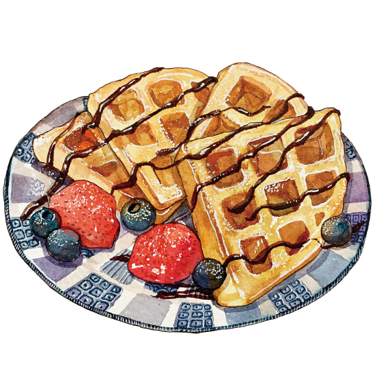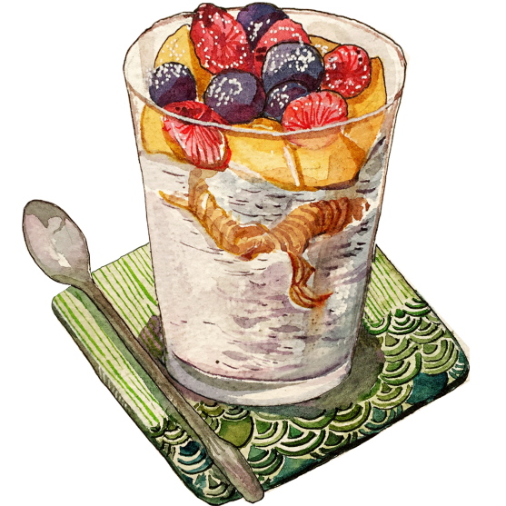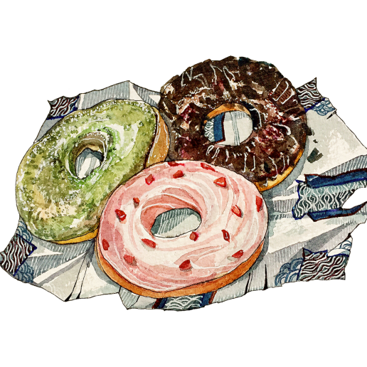 2015年,林佳晨考入了中国美术学院版画系,木板、铜板、丝网等版画材质的多元表现力,为她打开了艺术的“多元宇宙”。而真正促使她走向职业插画师道路的,是大学期间在微博分享的水彩作品。“我第一次接到商单是读大一的时候,我把作品分享在微博上,意外接到了第一笔商单。还记得我第一笔稿费是450元,对方要求我画十款点心贴纸,当时我连甲方乙方,完全是摸索着完成。”这次经历让她意识到可以将爱好变现,逐渐将绘画作为职业方向,并远赴英国伯恩茅斯艺术大学深造。