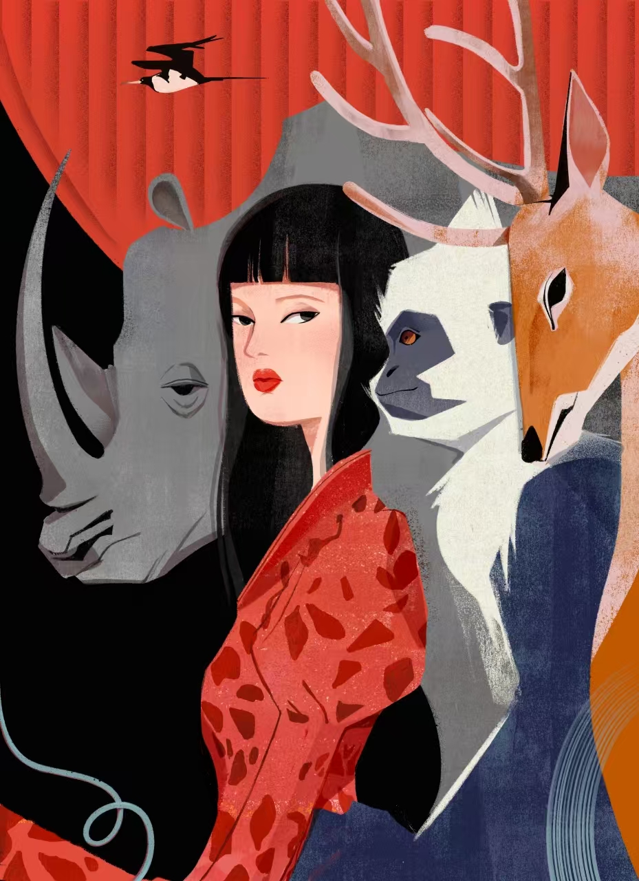 “插画不只是好看,”林佳晨说,“艺术应该探讨社会命题。”林佳晨的作品涉及人工智能、女性主题、动物保护等多个领域。《动物测试终将成为历史》就是为响应众多美妆品牌拒绝动物测试、投身动物保护的行动而创作。除此之外,林佳晨还创作了“2020s新兴科技发展”系列、《你/我是什么形状》等多个系列插画,多次在国内外插画大赛中获奖,如JIA日本插画大奖2023银奖等。