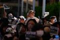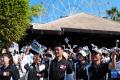 6月28日,当地民众在日本和歌山县冒险世界游乐园送别四只大熊猫。