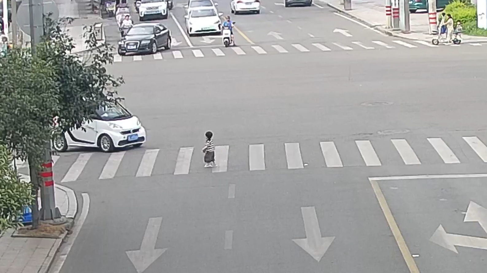 6月17日傍晚发生在温州乐清市北白象派出所的温馨一幕,背后是一场惊心动魄的街头救援。当天17时许,白象大道十字路口出现揪心画面:车流湍急的晚高峰中,一个不足1米高的幼童竟独自穿梭在机动车道间,黑白条纹上衣在钢铁洪流中时隐时现。