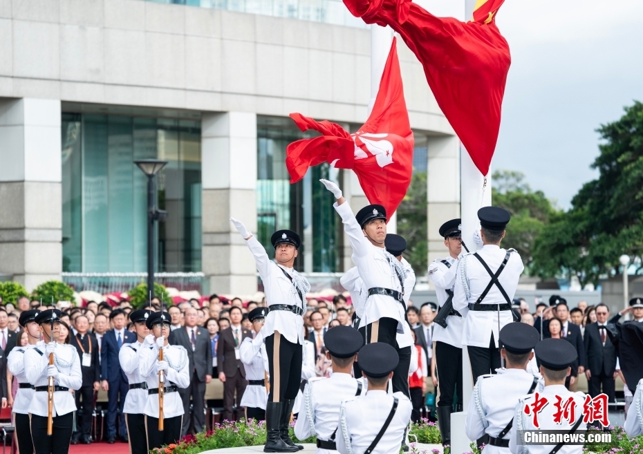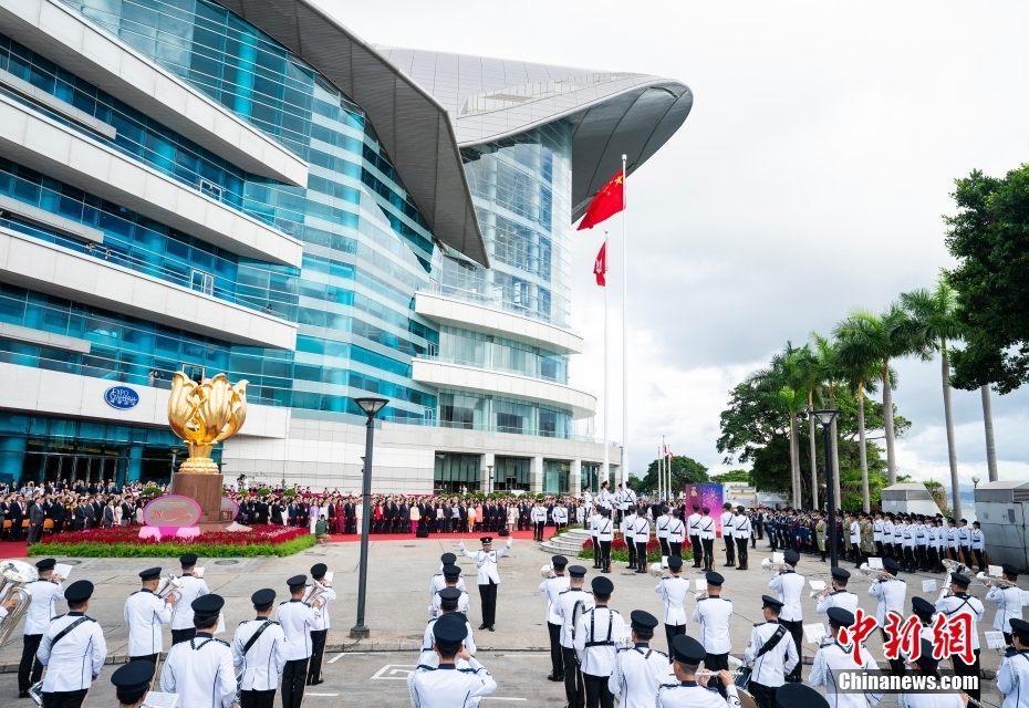 7月1日,香港特区政府在金紫荆广场举行升旗仪式,庆祝香港回归祖国28周年和香港特别行政区成立28周年。中新社记者 侯宇 摄