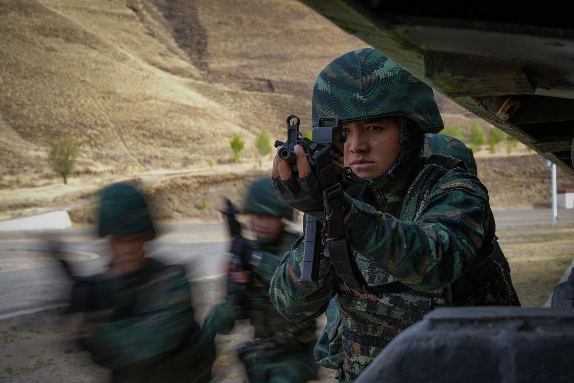 ↑达娃卓嘎(左一)和战友进行战术训练“成为别人心中的一束光”