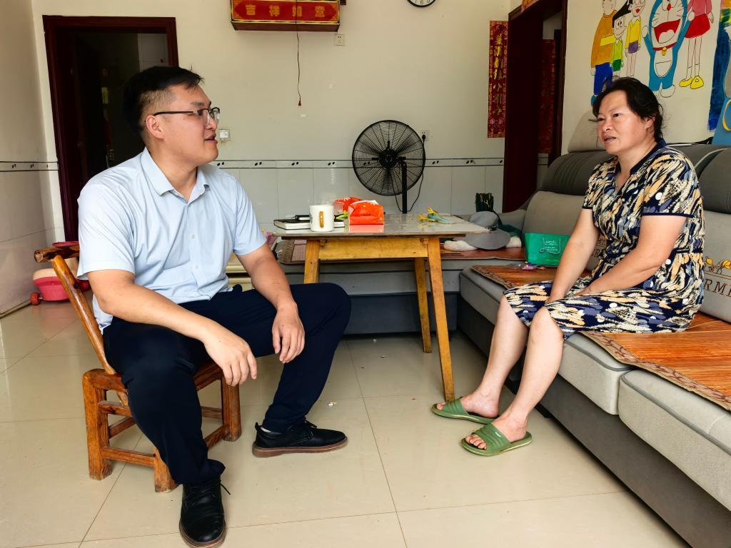 6月17日,李隐(左)在湖南省宁乡市夏铎铺镇兴旺村一户村民家走访。 新华社记者谭畅 摄