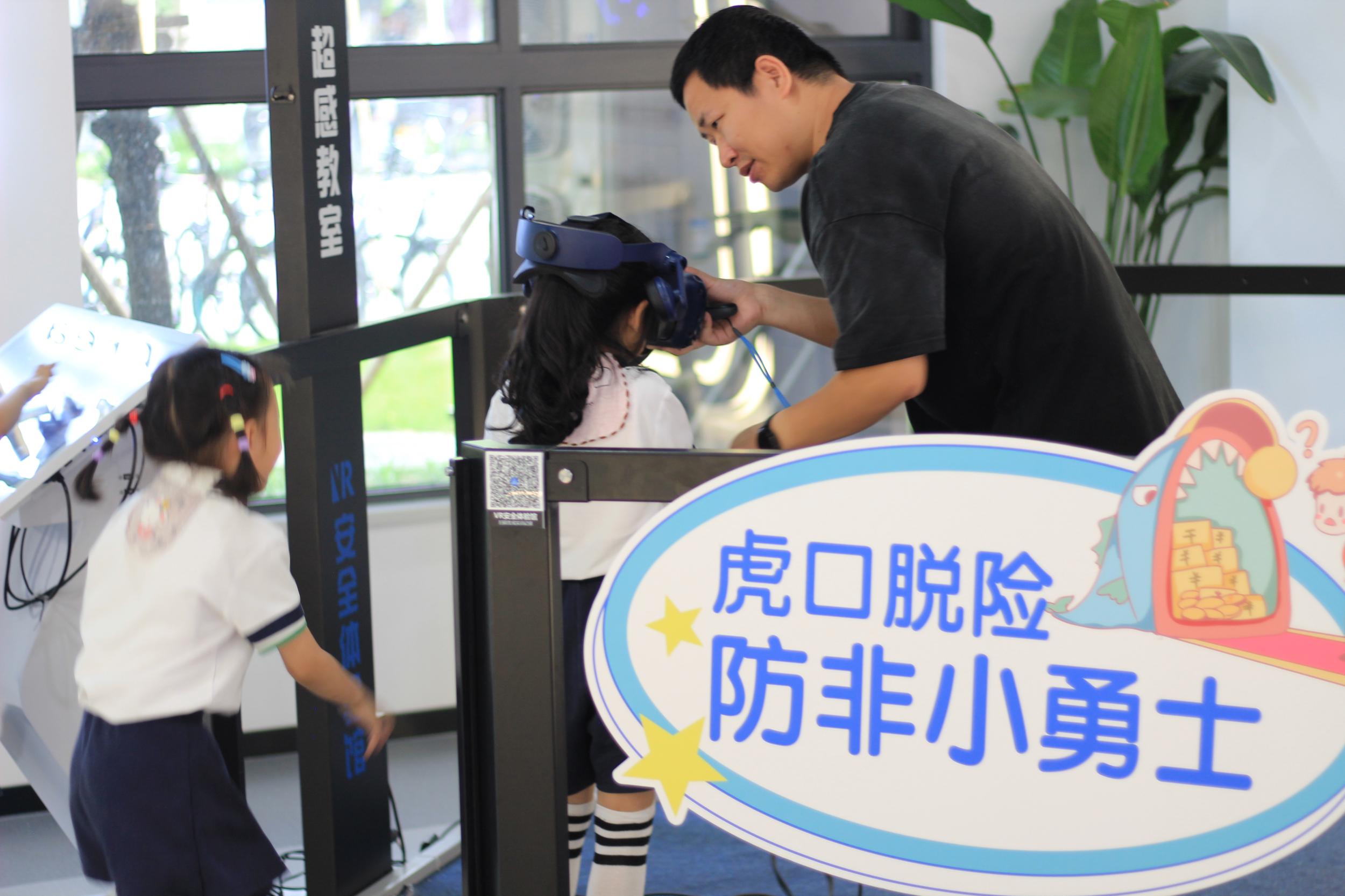 VR世界,沉浸体验。温州商学院安全教育馆内,孩子们戴上VR眼镜,在“体验舱”里惊呼连连,身临其境感知安全陷阱,童心悄然播下“不轻信陌生人”的种子。