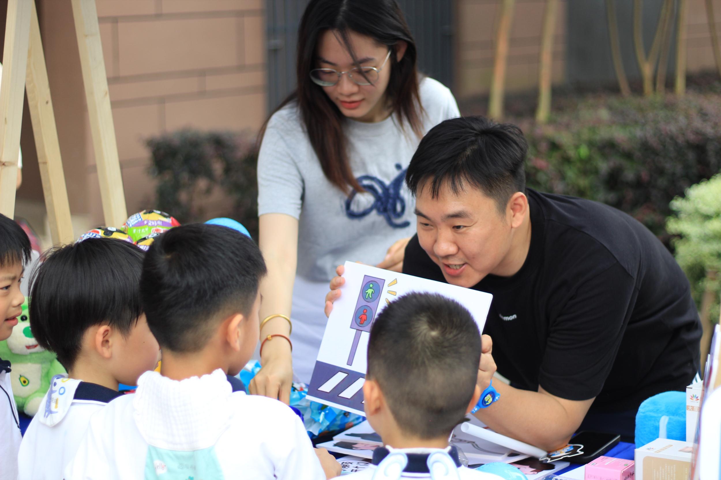 游戏摊位,趣味闯关。党员教师精心设计“安全拼图”“反诈转盘”等游戏,小朋友奶声奶气地回答“不能告诉密码”,以此赢得闯关成功的小奖品,安全知识在欢声笑语中传递。
