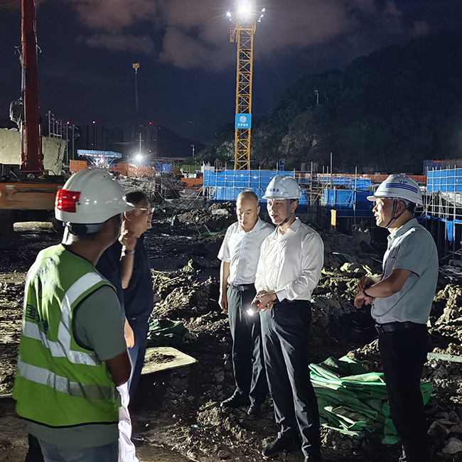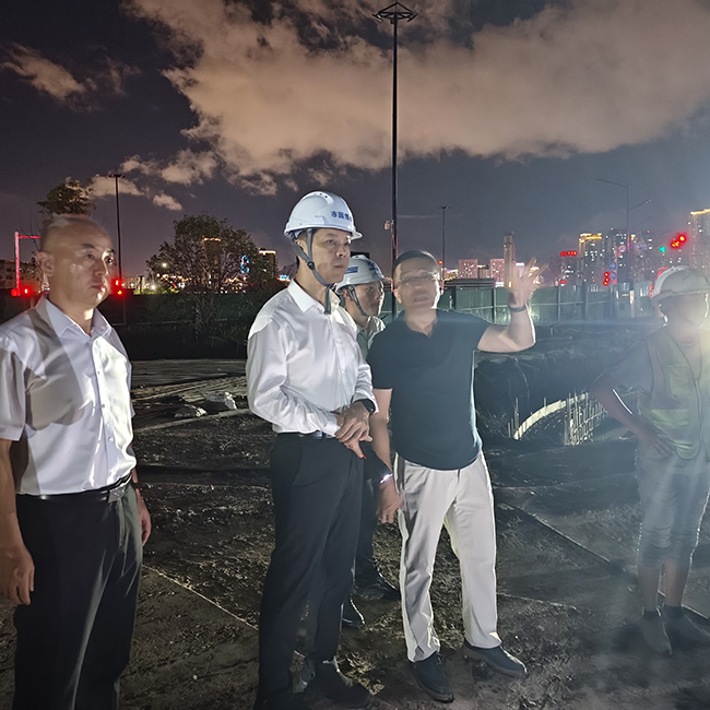 来到灯火通明的南园施工现场,尽管已是夜间,工地依然是一片繁忙而有序的景象。曾瑞华与项目负责人深入交流,详细了解当前建设进展、施工力量配置、战高温等情况。目前,南园钢结构施工正如火如荼开展,为了确保项目如期完成,施工采取日夜两班制,科学高效作业的同时,最大限度减少对周边居民生活的影响。曾瑞华指出,安全生产是项目建设的生命线,要严格落实安全生产责任,强化安全管理,确保施工过程万无一失。尤其是在高温和夜间作业环境下,更要高度重视工人的安全与健康,科学调配资源,优化施工流程,做好防暑降温、照明保障、安全防护等措施。