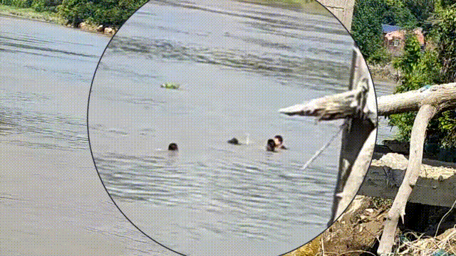 14时19分,在距离男子落水1.5公里外的屿门村加油站附近的江边,胡炳南发现了异常。“在那里!人在那!”只见,几十米外的水湾处,一个身影正在江浪中挣扎,头部时隐时现,随时可能沉入水下。