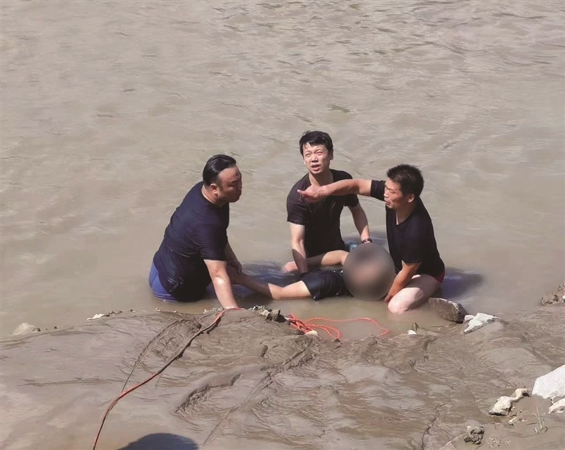 “坚持住!吸气!”陈久栋在急流中大声呼喊,他们用身体构筑起生命防线,以教科书般的托举动作,最大限度减少呛水风险。