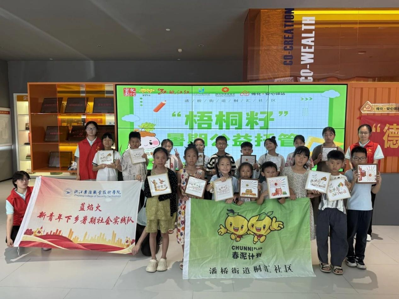 温州网讯(通讯员 陈卓嘉)日前,瓯海区潘桥街道桐汇社区联合温州传化公路港及浙江安防职业技术学院“蓝焰火”新青年下乡暑期社会实践队,在物流共富港传化·安心驿站共同启动“梧桐籽”公益托管课堂。