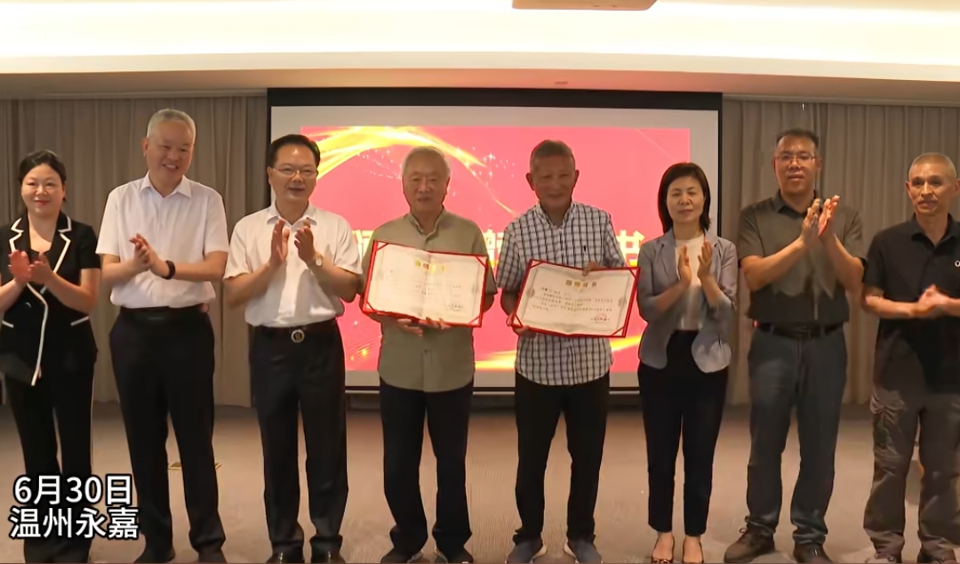 永嘉县档案馆为叶新人举办了隆重的捐赠仪式(图左五为叶新人)