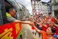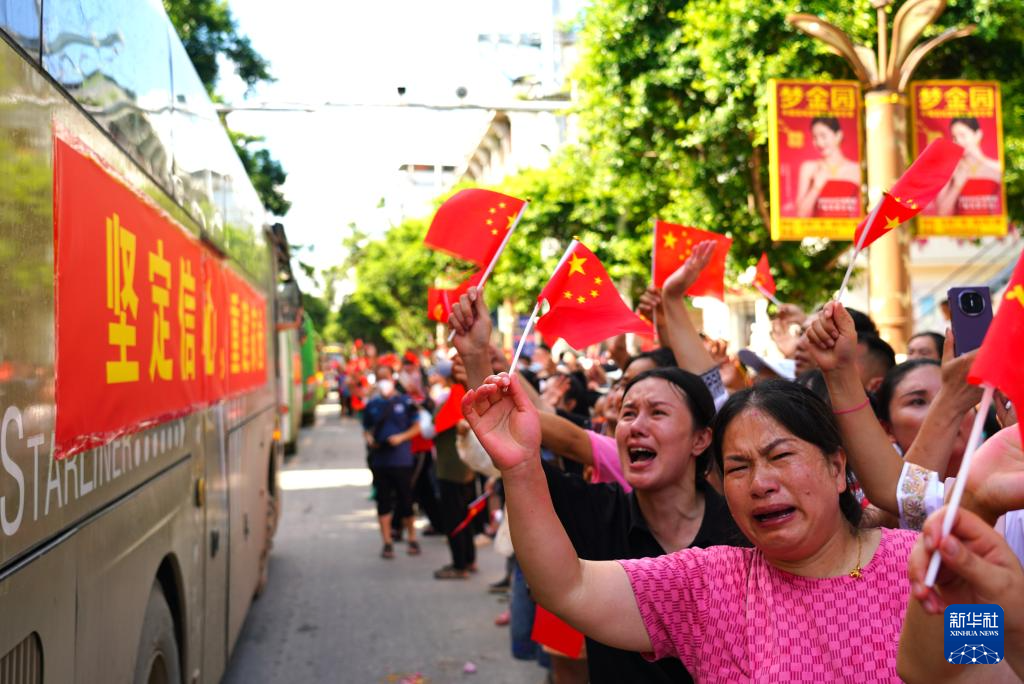 当日,各地驰援贵州榕江的抗洪抢险救援队伍开始有序撤离,当地群众自发涌上街头,送别救援队伍,表达感激之情。