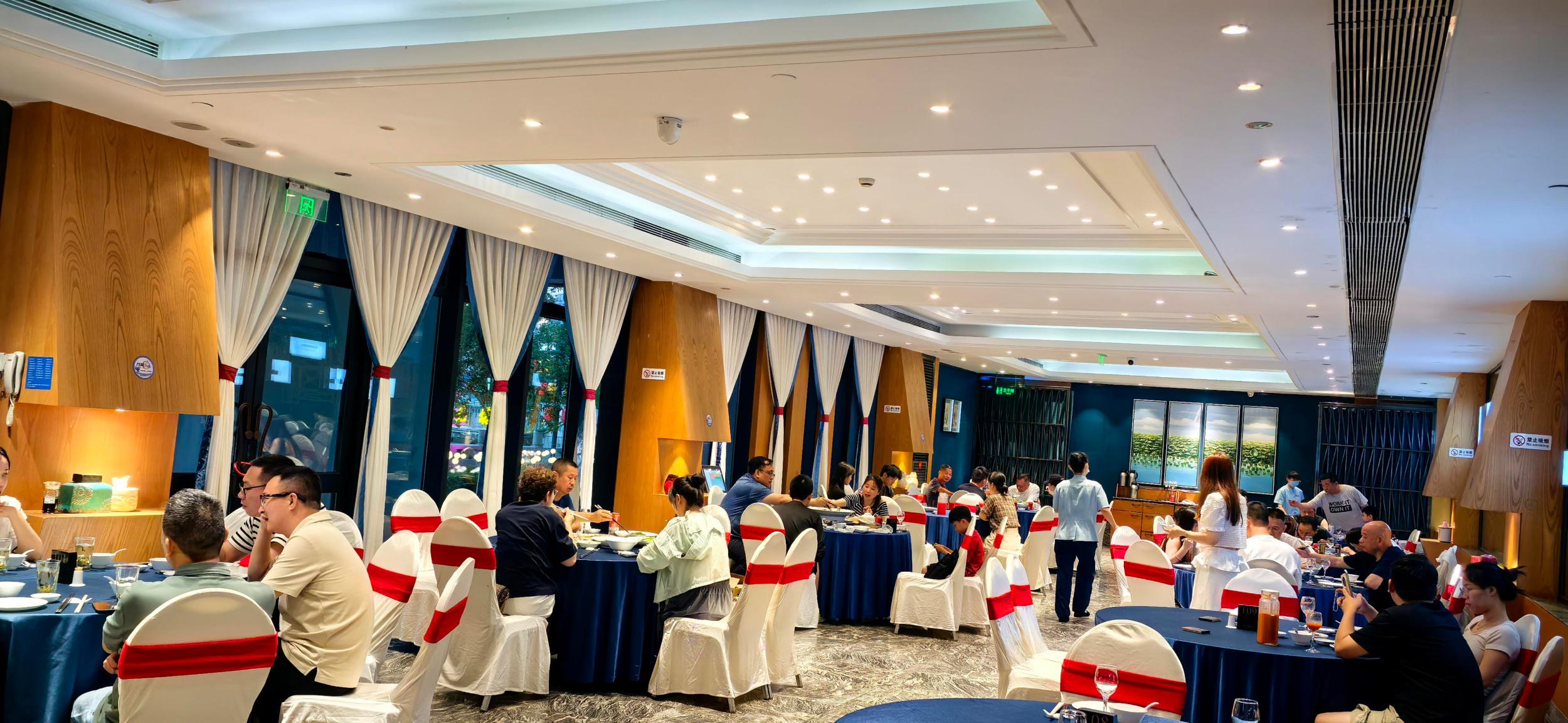 而小吃的上线,为小家庭到酒店聚餐提供了点菜的新思路。陈本保说,为了更加适配小家庭聚餐,他们还准备在一楼大厅里摆出四人位的餐桌。同时,他们还推出了包括冷盘与热菜在内的几乎所有菜品“半份半价”政策。一份79元的滩鲜手工番薯粉,点半份39.5元;一份45元的葱油两头乌肉拌面,点半份22.5元;一份99元的沸腾鱼,点半份49.5元……甚至,得尔乐最为知名的千岛湖大鱼头,为了适配家庭聚餐,也特地让供应源头“千发集团”提供个头小一些的活“淳鱼”,以前,他们端上桌的半个鱼头重量在5斤左右,现在可以点重量在2斤左右的半个鱼头了。