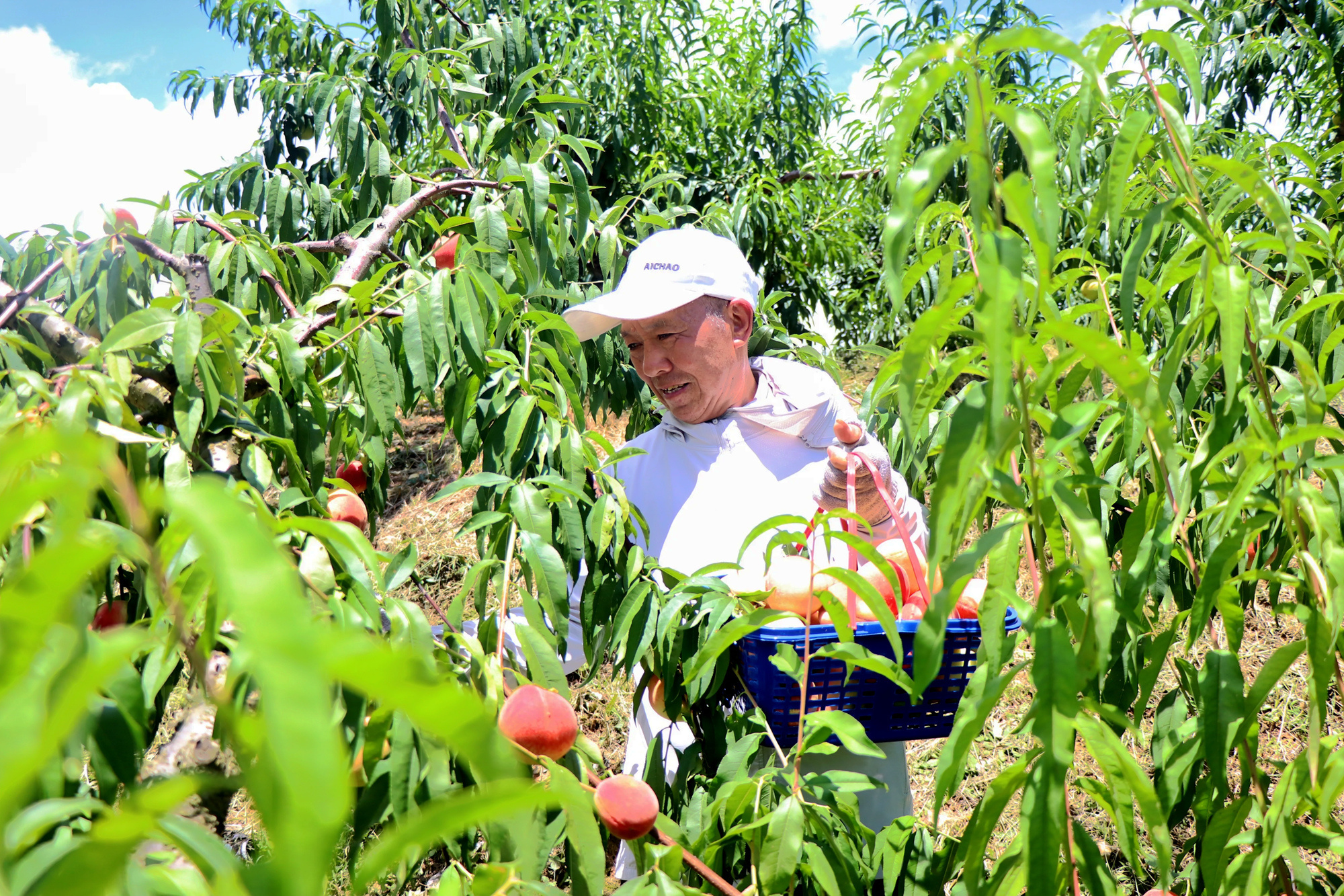 农户们顶着高温酷暑,汗水浸透衣衫,却步履不停地穿梭于缀满红果的桃林之间。陈君/摄