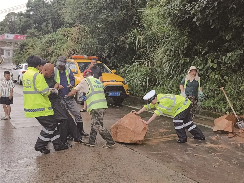 各级警力紧盯灾害隐患点。对易积水、事故易发路段等重点部位开展道路安全隐患排查,在危险区域设置警示牌、防护措施,引导群众、车辆避开隐患路段,并对路面倒树、落石等进行及时清理,确保过往车辆安全有序通行。